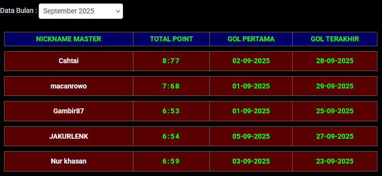 34 | kucingjowo | 2:18 | 01-10-2025 | 16-10-2025 |